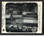 In this image, the Baldwin Locomotive Works company’s erecting yards can be seen, where several locomotives are actively being constructed. Founded in 1825 by the jeweler Matthias W. Baldwin, the company would rise to become the largest steam locomotive producer in the world for decades. The company was started after Baldwin created a small stationary steam engine for his own personal use and was later asked by others to build similar engines. Baldwin would build a miniature locomotive in 1831, putting him firmly on the path for locomotive manufacturing. The company suffered many ups and downs, facing several economic downturns cutting production and profits as well as a few periods of economic booms, with one example including a downturn from losing Southern business at the start of the Civil War only to gain vastly increased demand from the North shortly after the secession. However, business began declining after WW1 as the Great Depression took its toll on the American economy and diesel locomotives rose to prominence. The company’s failure to create a successful diesel-electric locomotive forced it to declare bankruptcy in 1935, only later reemerging in 1938 with a drastically changed management structure. The Baldwin Locomotive Works company later merged with the Lima-Hamilton Corporation on September 11, 1951, bringing an end to the original company in general as they were later resold and relegated to a replacement and renewal parts distributor until they were completely dissolved in 1991.
